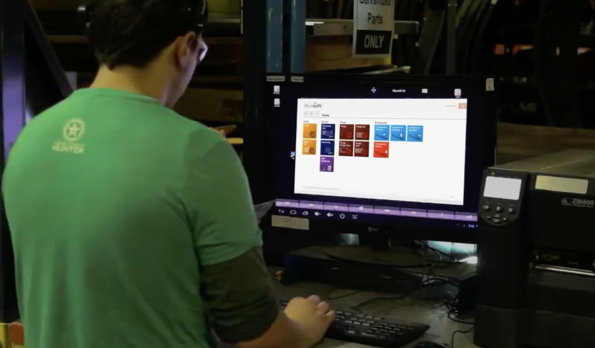 Guides workers through multiple warehouse tasks: picking, receiving, put-away, inventory, and internal transfer