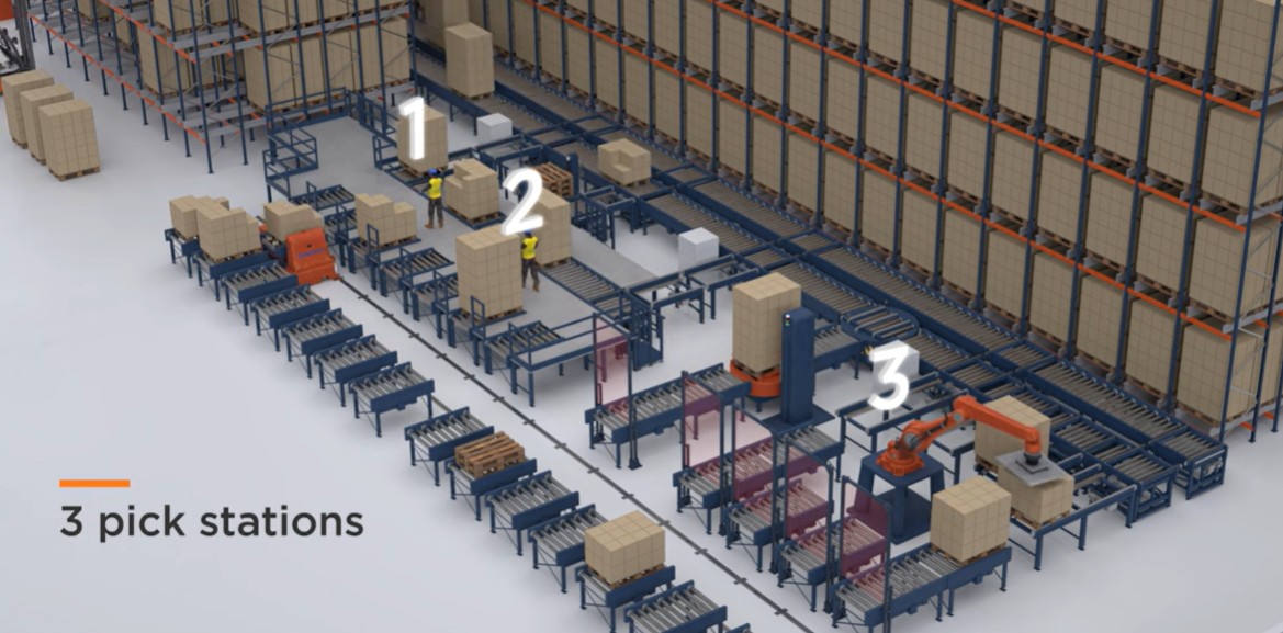 - •1 automated and 2 manual pick stations in freezer warehouse, enabling simultaneous preparation of up to 12 orders