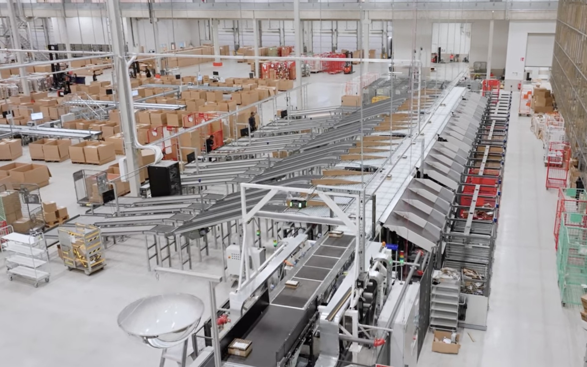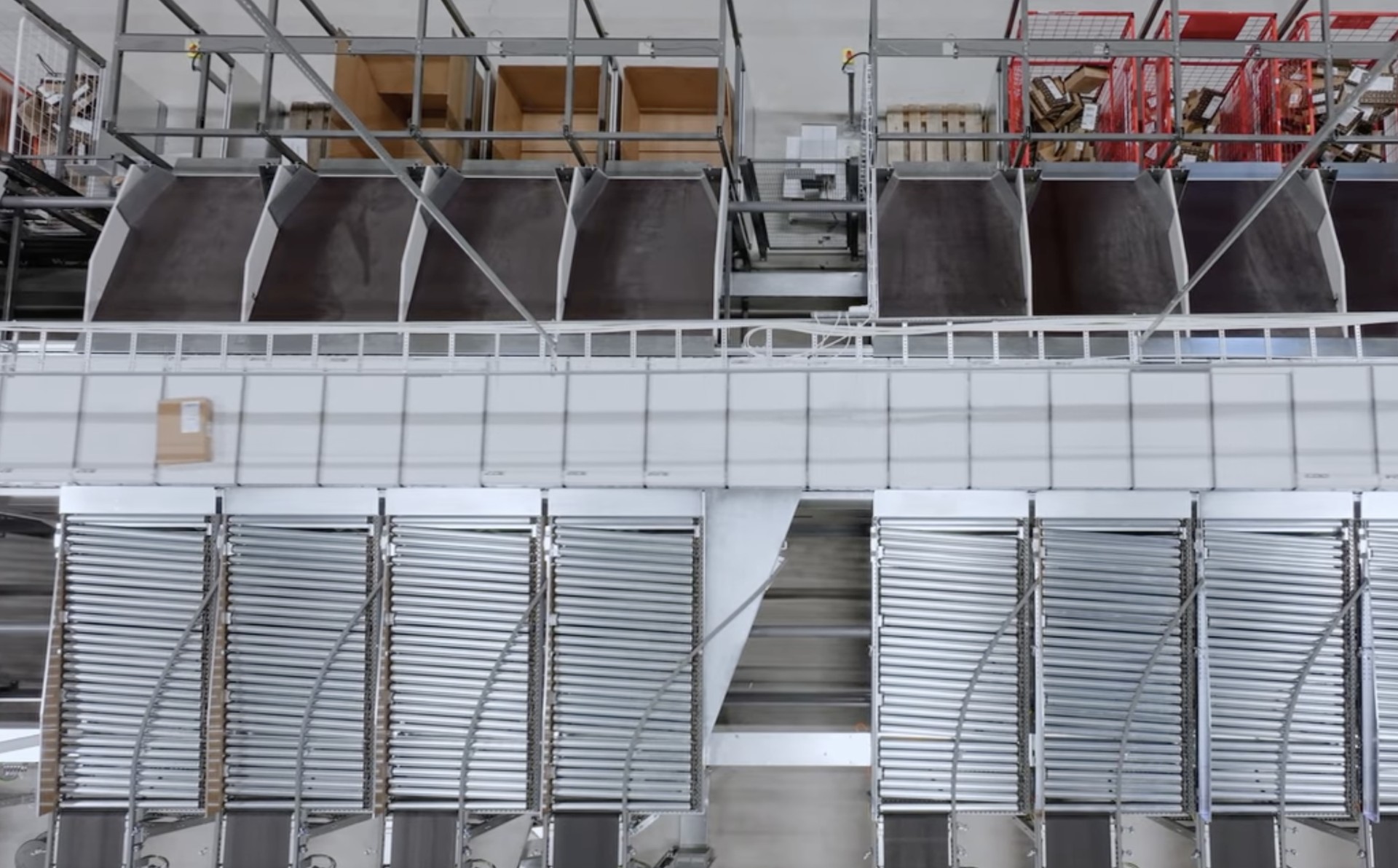 Handling multiple package types—including various sizes of cartons and padded bags—in a fully automated workflow presented a technical challenge. KNAPP designed the system to automatically transport and sort all unit types, ensuring comprehensive automation without manual intervention points.