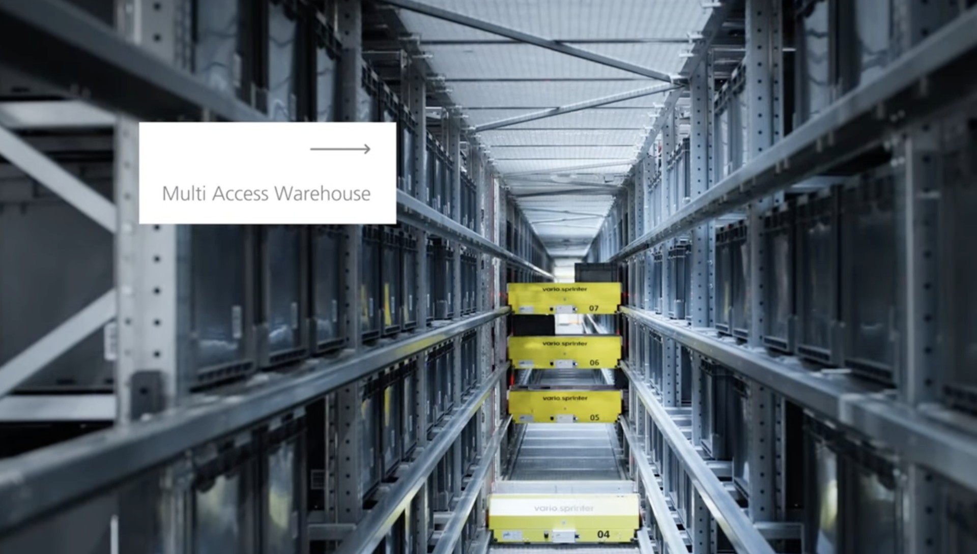 - •Multi Access Warehouse with 6,500 container positions, 1 container lift, and 12 level-bound vario.sprinter shuttles