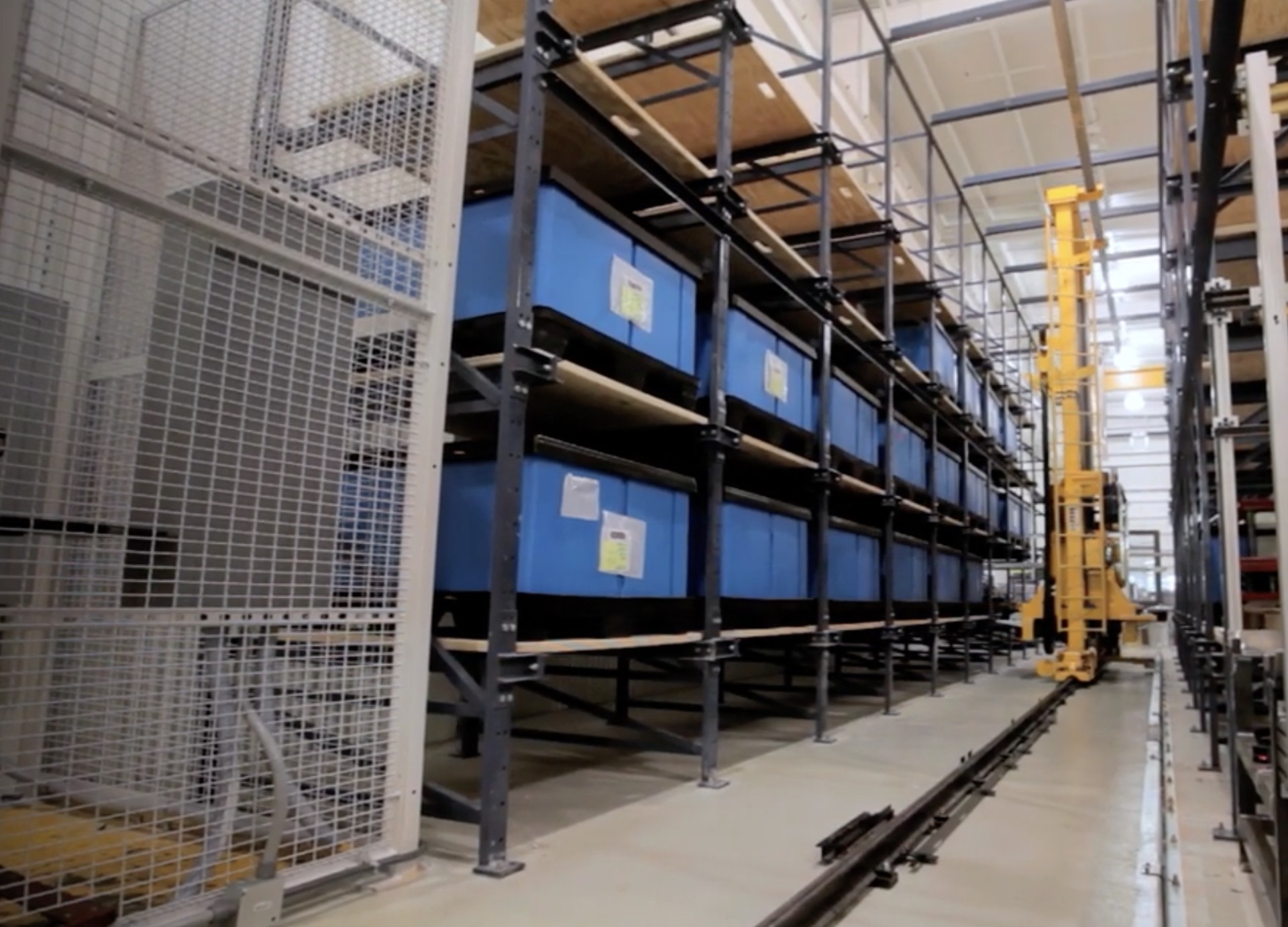 - β’Organized storage system replacing manual floor storage and pallet stacking
