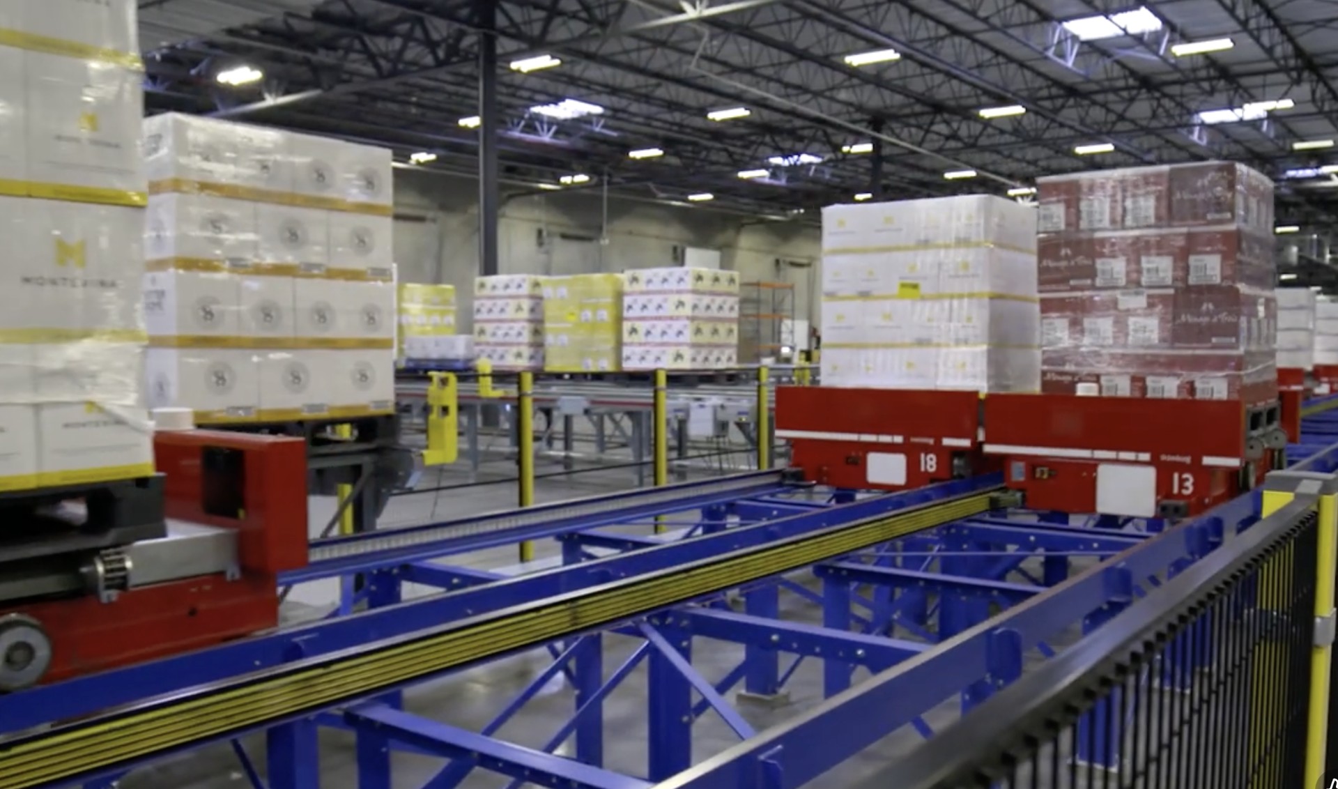 The 2013 project was driven by the need to increase the speed at which products moved into storage and were shipped, while consolidating inventory from two distribution centers into one high-density location. The facility represents a complete end-to-end winery operation, crushing over 100,000 tons of grapes annually and processing wine through three high-speed bottling lines with capacity for a fourth.