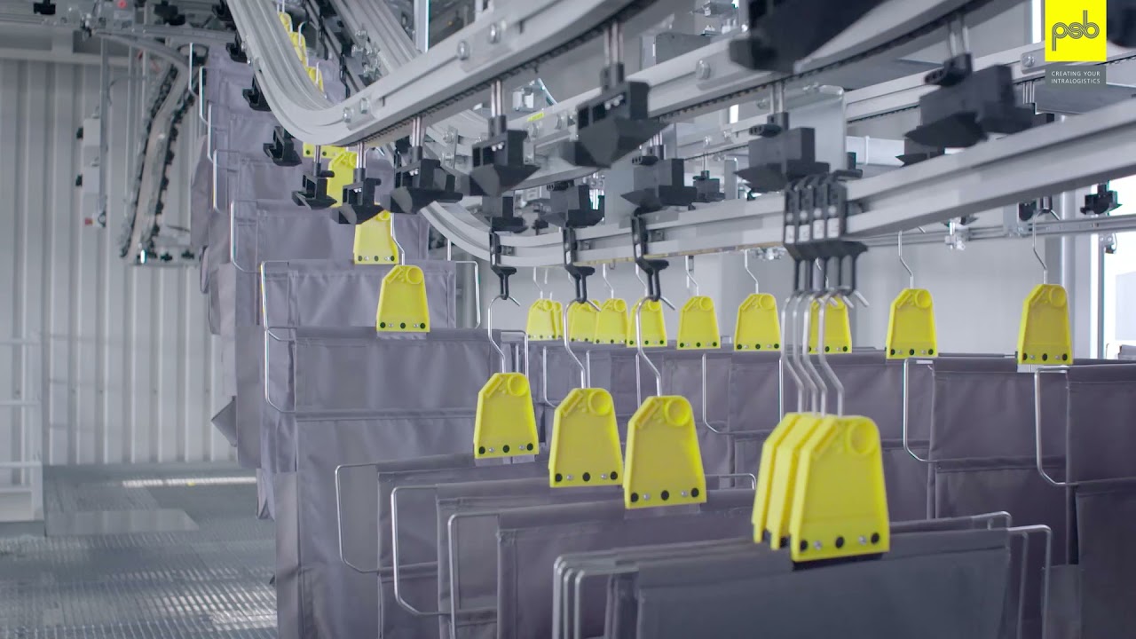 The system operates on the pocket sorter principle. Individual items are carried within "pockets" or compartments attached to a continuously moving horizontal ring. Each pocket can be independently addressed. When a pocket reaches its designated discharge point, a mechanism (likely a tipping or pushing action) activates to release the item from the pocket onto the correct take-away chute or conveyor.